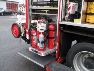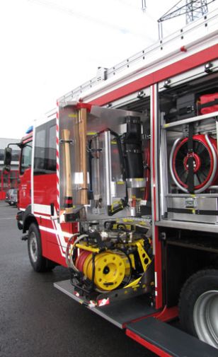 - Schnellangriffshaspel mit 50 m Gewebe-Druckschlauch