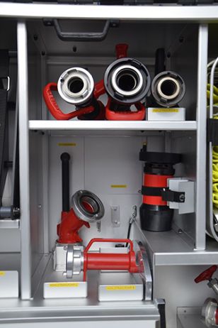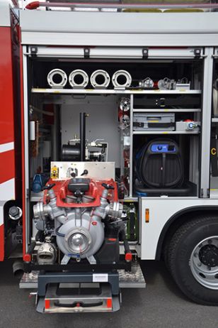 - Lichtmastbedienung sowie Motormanagement) und Tastensystem mit zusätzlichen Manometer/Vakuummeter (redundant) sowie integrierter Steuerung für Schaumzumischsystem Fire Dos 1600