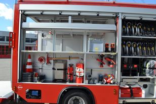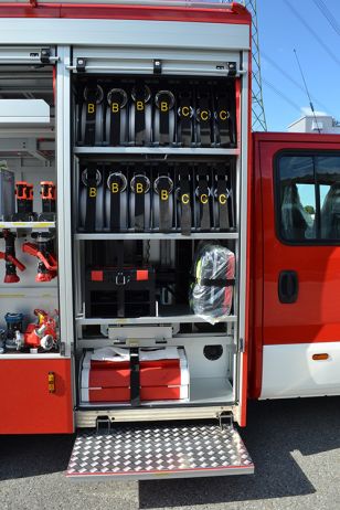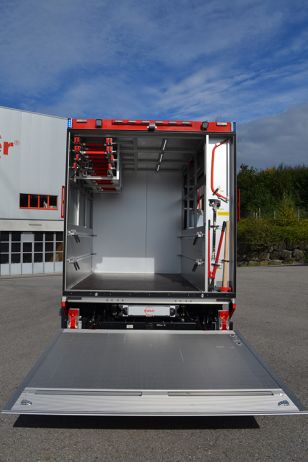 Lagerung Tragkraftspritze auf absenkbarem Schlitten gerlagert