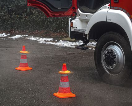Mit stoßunempfindlicher und wasserdichter Bauweise sind die Leuchten für den robusten Einsatz im Außenbereich bestens geeignet. Eine automatische Aktivierung und Synchronisierung erfolgt direkt beim Entnehmen aus dem Koffer - das spart Zeit und sorgt für sofortige Einsatzbereitschaft.