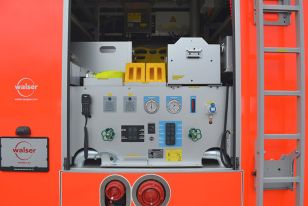 - Pumpensteuerung über WDS mit Anzeige von Tankfüllstand, Wasserförderung, Lichtmastbedienung sowie Motormanagement) und Tastensystem mit zusätzlichen Manometer/Vakuummeter (redundant)