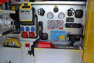 - Pumpensteuerung über WDS mit Anzeige von Tankfüllstand, Wasserförderung, Lichtmastbedienung sowie Motormanagement) und Tastensystem mit zusätzlichen Manometer/Vakuummeter (redundant)